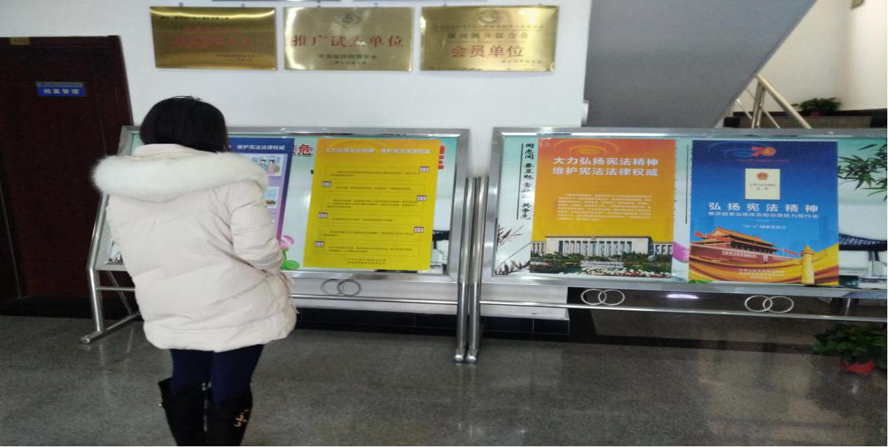 ? ? 活動主要以LED 電子顯示屏、展板宣傳、物探隊網站宣傳以及發放憲法書籍等方式引導廣大領導干部職工尊崇憲法、學習憲法、遵守憲法、維護憲法和運用憲法。