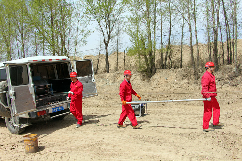 ? ? 今年以來,物化探隊積極發揮主業功能優勢,不斷開拓新的市場。截至目前,綜合測井業務在榆林、府谷、韓城、彬縣、旬邑、銅川、安塞等地積極開展,業務范圍包括油頁巖、煤田、鹽井、石油測井等。圖為煤田測井現場。