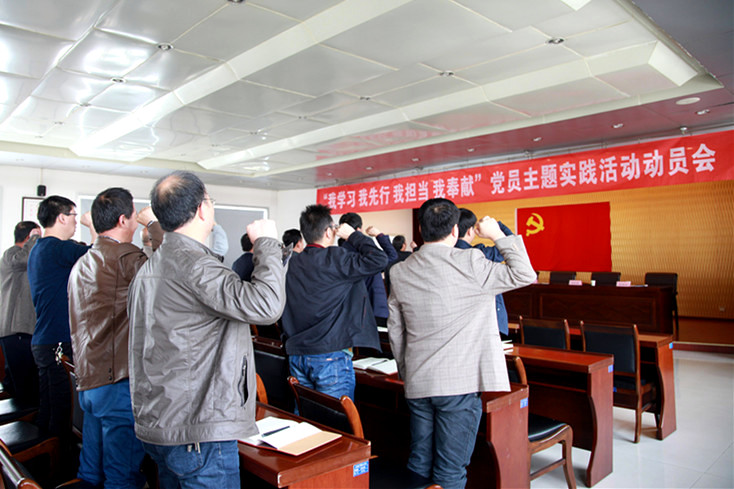 ? ? 為推進(jìn)“兩學(xué)一做”學(xué)習(xí)教育常態(tài)化制度化,4月18日,物化探隊(duì)召開(kāi)關(guān)于在全體黨員中開(kāi)展“我學(xué)習(xí)、我先行、我擔(dān)當(dāng)、我奉獻(xiàn)”的“四我”主題實(shí)踐活動(dòng)動(dòng)員大會(huì)。隊(duì)領(lǐng)導(dǎo)班子成員、支部書(shū)記、黨小組長(zhǎng)及在隊(duì)的全體黨員參加了動(dòng)員會(huì)。